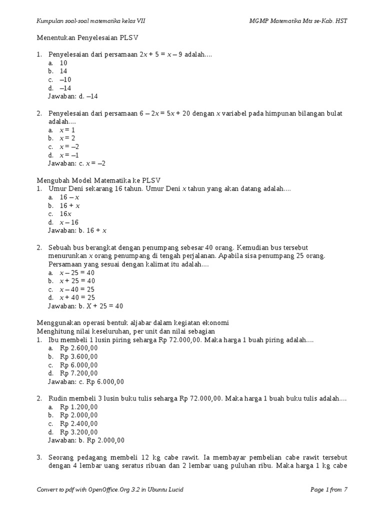 Contoh Soal Plsv Dan Ptlsv Kelas 7 Beserta Jawabannya from imgv2-1-f.scribdassets.com We did not find results for: Check spelling or type a new query. Contoh soal cerita plsv dan ptlsv beserta jawabannya. Maybe you would like to learn more about one of these?